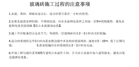 2.砌筑玻璃磚隔墻所需材料
