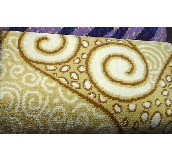 6.藏毯:藏毯打結(jié)法是在一個(gè)栽絨結(jié)里具備一個(gè)重疊的打結(jié)圈的栽絨結(jié),即手工連環(huán)結(jié),俗稱(chēng)“重疊連環(huán)扣”,其打結(jié)程序可歸納為“挽頭兒割絨”,即將絨紗同時(shí)纏繞在經(jīng)線(xiàn)和編織桿上,連續(xù)操作,挽到一定長(zhǎng)度才割絨一次,割絨同時(shí)抽出編織桿,比傳統(tǒng)的“8”字扣的每頭兒必砍,明顯減少勞動(dòng)強(qiáng)度,提高勞動(dòng)效率。地毯的厚度由鐵桿的直徑?jīng)Q定,因此毯子厚薄控制自如。因藏毯打結(jié)法的特點(diǎn),毯面可割絨,也可圈絨,可以滿(mǎn)足不同風(fēng)格要求。用藏毯打結(jié)法織出的地毯,毯面形成自然橫向條紋,看上去重重疊疊,層次分明;毯背疙瘩有致。